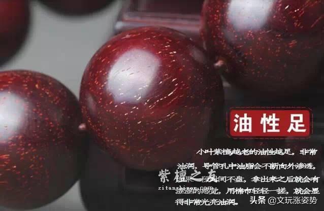 3.如果珠子是由小叶紫檀新料所做,金星珠子由于密度不够,棕眼大,金星也很容易脱落。