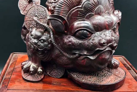 印度小叶紫檀--母子金蟾,规格9.7/9.5/11,净重1斤,精选火焰纹老料,材质油润油性一流,纯手工精工雕刻,工艺精湛,寓意招财…[详情]