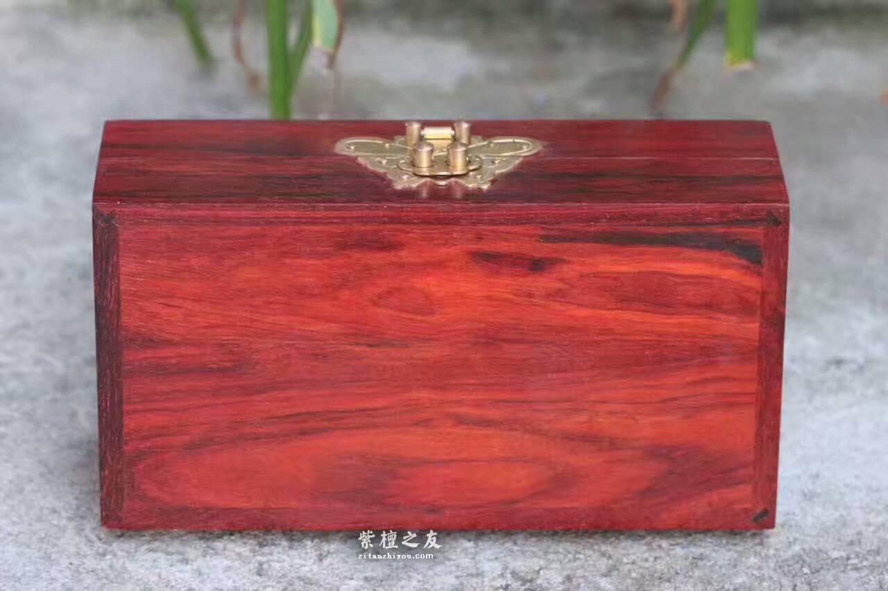 小叶紫檀--首饰盒,规格19.3/10.2/6.6,净重0.96斤,双拼面板,鸡血红材质,暗榫卯结构,性价比超高…..[详情]