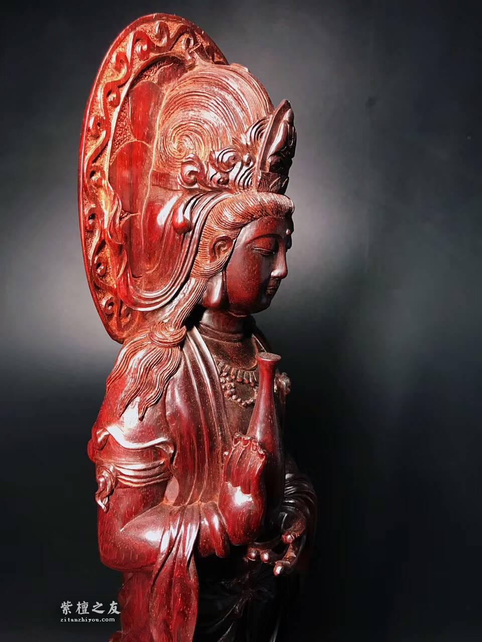 【特色】印度小叶紫檀高密度金星泥料,纯手工轻刀工艺,全品无瑕疵。料子好,比例漂亮。细微之处见风范,毫厘之优定乾坤。长13.8宽9.3高43cm