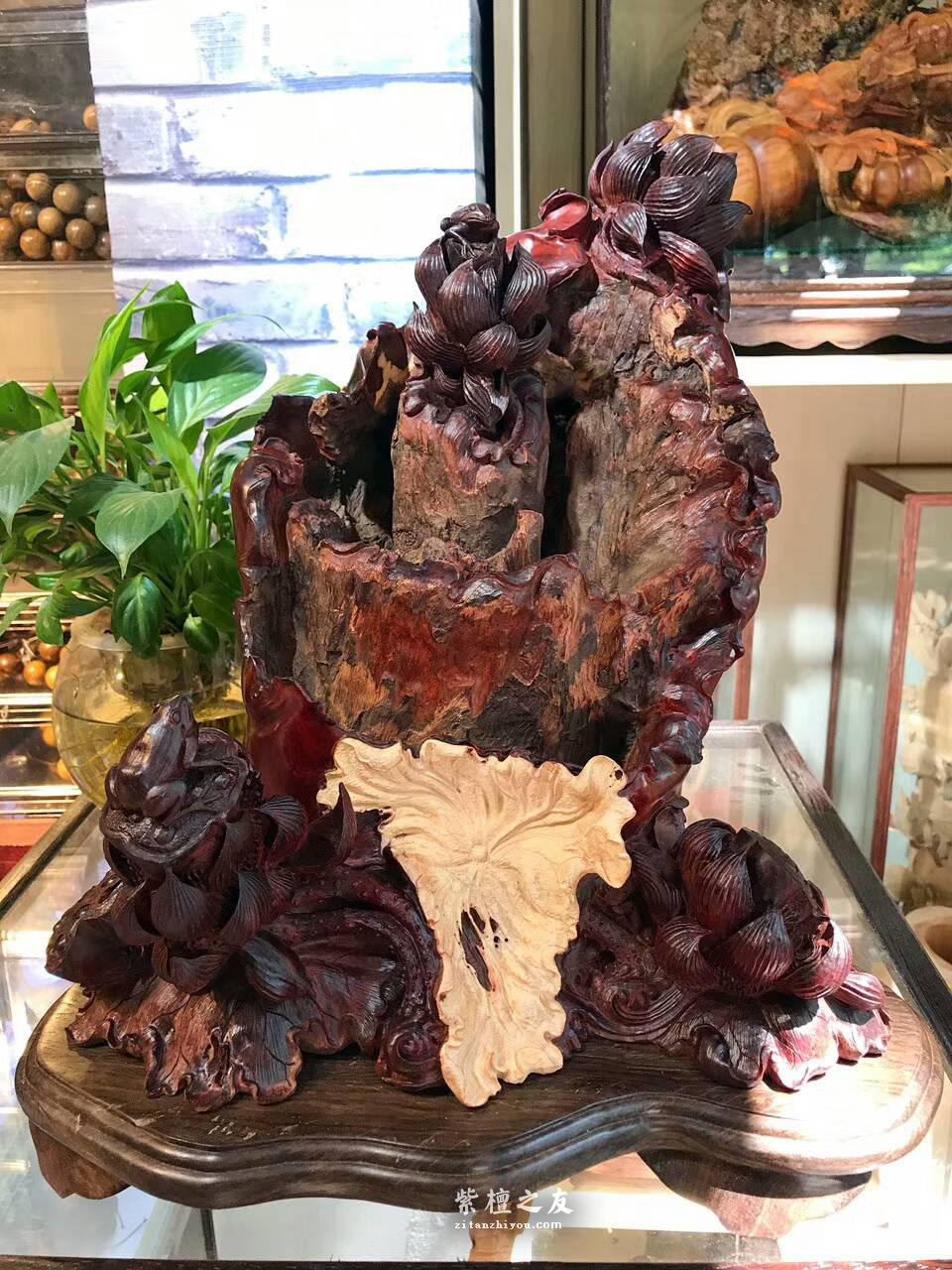 【枯木生花】【特色】印度小叶紫檀风化百年枯木老料,高密度金星带瘤树头,手工雕刻枯木生花。荷花池塘。能工巧匠赋新生,别出心裁出极品!…..[详情]