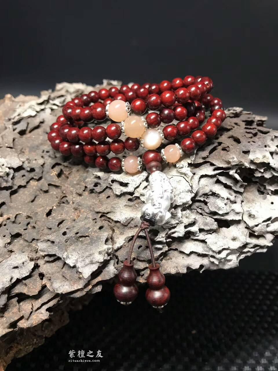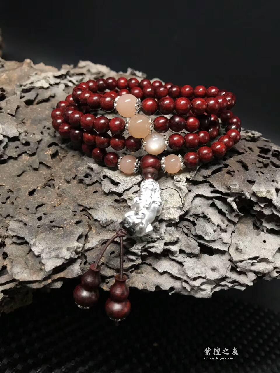 【月明风清】【特色】有没有看花眼,店内款式更多!新出印度小叶紫檀0.6*108。无毛孔泥料,鸡血红。这样的好料很少开0.6的。密度超级好!!!搭配天然月光石/青金石/孔雀石/水晶,纯银配件等。…..[详情]