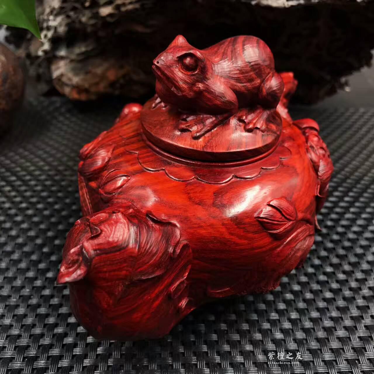 【特色】高密度泥料印度小叶紫檀纯手工雕刻摆件壶。春兰,夏荷,秋菊,冬梅。炎炎夏日,予独爱莲之出淤泥而不染, 濯清涟而不妖, 中通外直, 不蔓不枝, 香远益清, 亭亭净植。长17.5宽9.5高10。