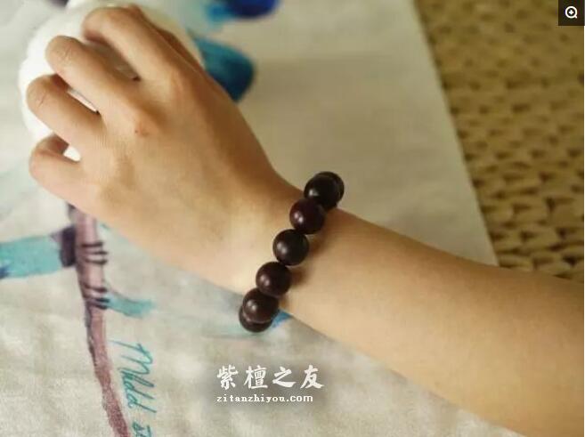 不但如此,紫檀木通常会散发一种叫“木氧”的物质,这种物质散发的香气比较,但好闻,它有芳香行气的作用,古人认为芳香行气,既可以安神,使人沉寂安详,也可以加快人体内的新陈代谢,经常佩戴和把玩用小叶紫檀做成的佛珠、手串、手链、手把件等饰品,对我们日常养生是非常有好处的。紫檀散发的香气有利于人的心脏、肝脏、肾脏的机能,还可以使人心绪平衡、安详、沉寂。
